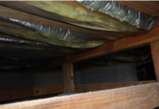 昔ながらの「グラスウール」断熱材を使用している場合、湿気を吸って重くなり、自重で垂れ下がったり床から剥がれ落ちたりすることがあります。
