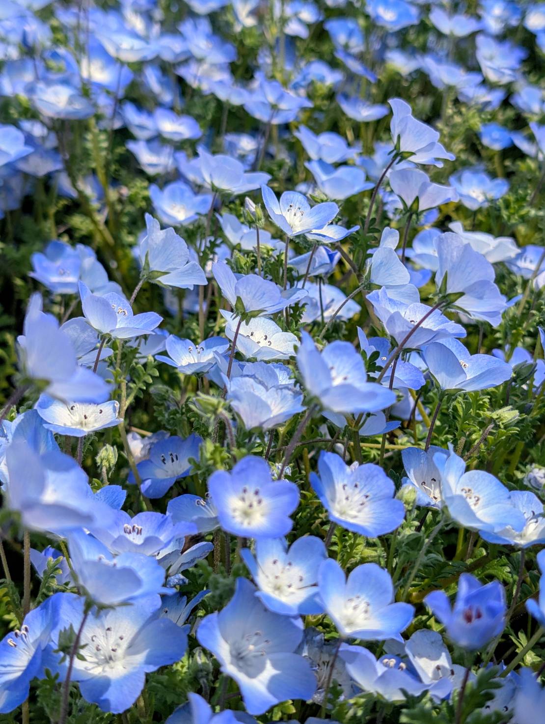 潮風を感じながらゆらゆら可愛らしく揺れるネモフィラたち。
